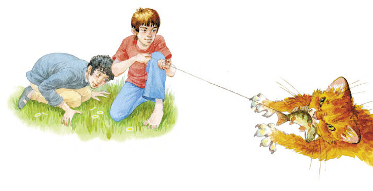 Вой прекратился. Мы услышали хруст и хищное щёлканье – кот вцепился зубами в рыбью голову. Он вцепился мёртвой хваткой. Лёнька потащил за леску. Кот отчаянно упирался, но Лёнька был сильнее, и, кроме того, кот не хотел выпускать вкусную рыбу.