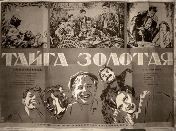 В 1937 году киностудия «Ленфильм» производит комедию «ТАЙГА ЗОЛОТАЯ» Режиссеры картины Геннадий Казанский и Максим Руф. Сценарист — Николай Погодин, операторы — Вениамин Левитин и Анатолий Погорелый, композитор — Венедикт Пушков, художник — Игорь Вускович. Роли исполняют актеры Борис Тенин, Александр Виноградов, Нина Латонина, Павел Волков, Нина Шатерникова, Юрий Толубеев, Василий Меркурьев, Николай Крючков, Александр Чекаевский, Алексей Савостьянов, Иван Кузнецов, Елена Волынцева. Фильм показали зрителю 13 октября 1937 года. Комедия из жизни советских золотоискателей на прииске.