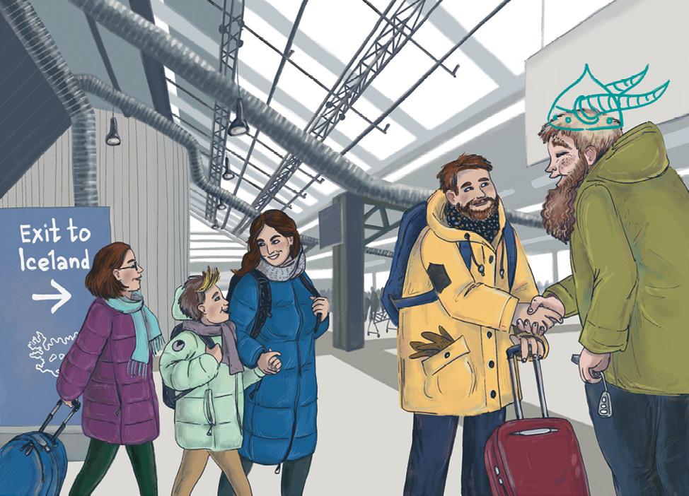Потом маме читать надоело, а у нас сели батарейки в планшетах, и мама стала рассказывать, что мы летим в страну викингов. Они раньше населяли Исландию, и мы сможем пойти в музей, посмотреть на драккар — это их корабль.