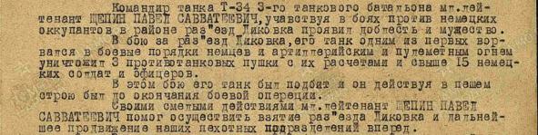 Шлю вам горячий курсантский привет. Это письмо от совершенно незнакомого человека. Я хочу рассказать нечто о вашем брате. Дело было весна наши части взломали оборону немцев и пошли вперед я по обстоятельствам остался позади и пошли осматривать недавнее поле боя был я и товарищ. Взорам нашим представилось следующее наш танк взгромоздился на легковую фрицевскую но и сам был подбит. Метров в 30 лежал молодой офицер танкист. Он был без шапки мягкие волосы обрамляли лоб. Глаза смотрели в небо, рядом была пачка писем, с которых я узнал его имя это и был ваш брат Щепин Павел. Запомнилась мне навеки Ваша открытка от 25/Хll я таскал почти полгода все не выпадало такого времени я там читал, что вы переписываетесь с некоторыми бойцами Не завяжем ли мы переписку во имя вашего брата.