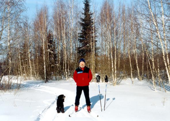 Как и обещали, на Рождество сильно похолодало. Вызвездило. На небе была полная луна. От мороза она была в ореоле и дымке. После прогулки с собаками Сергей не выдержал и решил осмотреть окрестности со снегохода, дав обещание не портить лыжню, которую я пробивал и поддерживал последние дни, что шел снег, а это непросто — на кругу около пяти километров, когда глубина снега уже под 50 см. Пока Сергей катался, мы с женой Сергея Татьяной и Лидой сидели у камина и пили чай. Татьяна рассказывала про Канарский круиз и свою собаку. Вскоре вернулся Сергей, замерзший и довольный. Сели пить чай. Они вспоминали лето и обсуждали планы на завтра. Было решено кататься на лыжах и снегоходе, потом сауна и праздничный обед.