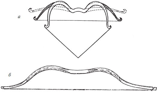 Рис. 4. а – лук «скифского» типа, получивший распространение у степных племен; б – лук «гуннского» типа с накладками из кости
