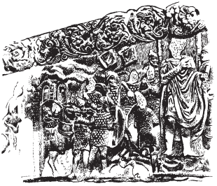 Рис. 6. Сарматы (роксоланы?) в чешуйчатых доспехах на барельефе арки Галерия в Салониках