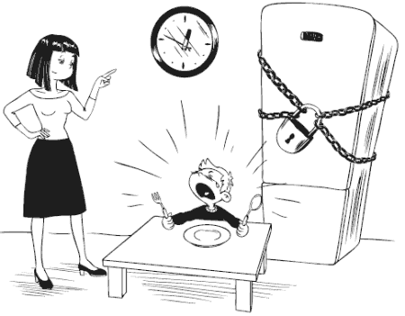 Правило 5. Не позволяйте бабушкам и другим родственникам вмешиваться, когда вы не даете ребенку есть в перерывах между установленными расписанием приемами пищи. Отвечайте с улыбкой на обвинения в «издевательстве над ребенком» и т. п. Сами продержитесь хотя бы две недели.