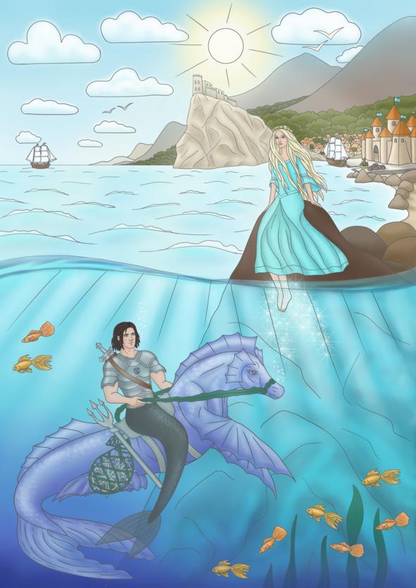 «В морской глубине, скрытой под покрывалом бирюзовых волн, живет удивительный народ, — было написано в книге, — прекрасные русалки и мужественные тритоны. Внешне они похожи на людей, однако умеют дышать под водой и вместо ног у них блестящие рыбьи хвосты. Их подводное королевство носит название Маринэ́я, и правит им мудрый и могучий волшебник — король Непту́н. Живет он в чудесном городе Сиарило́не, озаренном волшебным светом.