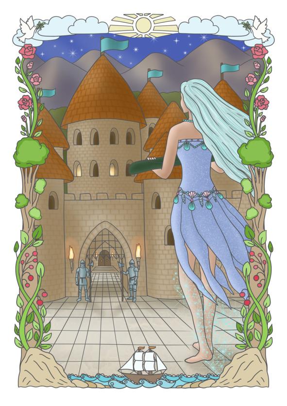 — Как тяжело колдовать на земле! — вздохнула русалка. Она собралась с силами и запела снова, ее хвост засветился более ярко. Его окутало облако сияющих голубых искр, а когда оно растаяло, стало видно, что хвост превратился в длинные стройные ноги. Морская дева встала, сделала шаг, другой. Ей было трудно и непривычно передвигаться таким образом, но выбора у нее не было. Она должна была попасть в замок. Морская гостья пошла вперед.
