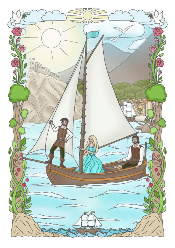 Вскоре принц и принцесса были уже на морском берегу. Король Ричард возился у небольшой парусной лодки. Услышав шаги Фро и Джастина, он обернулся и с улыбкой помахал детям рукой. Похоже, наст