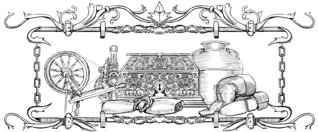 Отец не без помощи сестёр поднялся. Проверив дверь, знаки, что тянулись под порогом, он встал к наковальне, как если бы хотел приняться за работу. Поочерёдно, осколок за осколком, он разглядывал содержимое сундука, сближая металл с огнём свечи.
