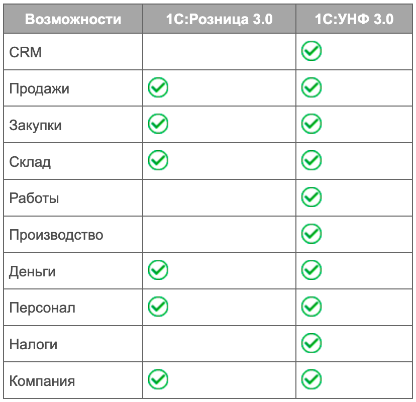 Программы «1С:Розница 3.0» и «1С:Управление нашей фирмой 3.0» имеют единую архитектуру, код и пользовательские интерфейсы.
