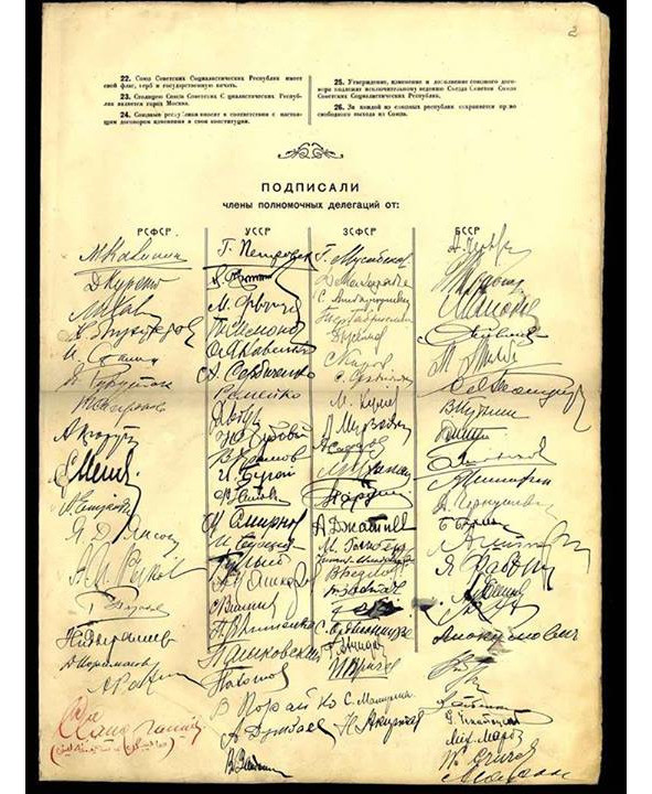 Последний лист русского экземпляра Мирного договора, заключенного РСФСР и УССР с Польской Республикой в г. Риге 18.03.1921.