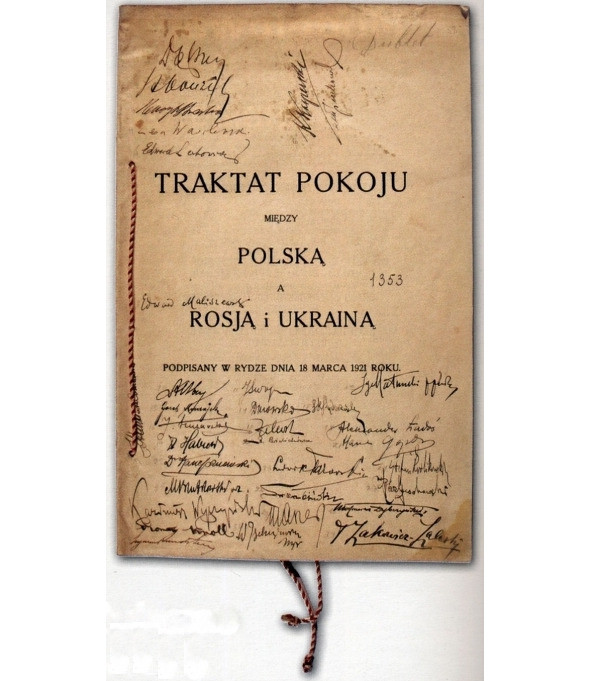 Титульный лист польского экземпляра Мирного договора, заключенного РСФСР и УССР с Польской Республикой в г. Риге 18.03.1921.