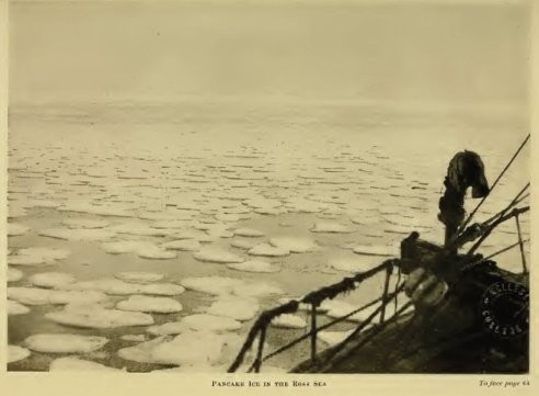 14. PUSHING THROUGH HEAVY FLOES IN THE ROSS SEA. THE DARK LINE ON THE HORIZON IS A "WATER-SKY", AND INDICATES THE EXISTENCE OF OPEN SEA
