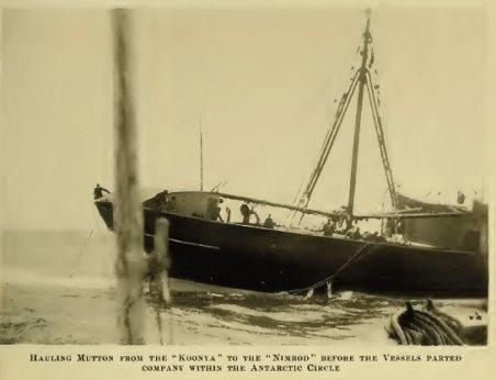 10. HAULING MUTTON FROM THE "KOONYA" TO THE NIMROD BEFORE THE VESSELS PARTED COMPANY WITHIN THE ANTARCTIC CIRCLE