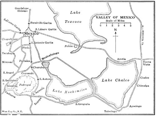 But a number of good and able men, particularly Cuevas and Couto, determined to ward off ruin, and awakened others. Peña, drawn from his retirement, consented for patriotic reasons to override all the technical difficulties; and on September 22 he announced formally that, in order to give the nation a head, he would act as the Executive until an interim President could somehow be chosen. At the small city of Toluca, capital of the state of México, just outside the Valley, this fiction of a government pitched its tent; and perhaps it gained some feeling of security from the vast bastioned, battlemented ridge between it and the Americans, from snowy Mt. Miguel towering above the city, and from the peacefully shining lagoons of the intervening meadows. What was more important, Herrera, Olaguíbel and many others of the best men rallied to the support of Peña, the representatives of neutral governments recognized him, and the states began to concur. Early in October, however, he removed to Querétaro, a safer yet central place, and with Luis de la Rosa as sole minister addressed himself to his task.[19]