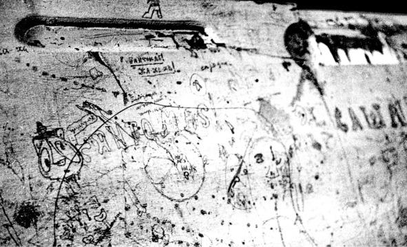 И вспомнил целый жанр народного школьного творчества, расцвет которого пришёлся на моё время. Художественную роспись (резьбу) по партам. А заодно — стенам, заборам и прочим доступным поверхностям.