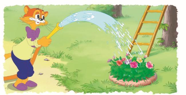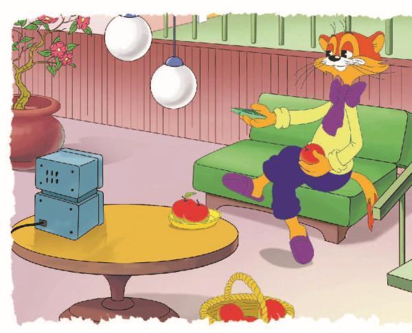 А тем временем кот Леопольд вышел из своего уютного домика. Погода была прекрасная: светило солнце, летали бабочки. Кот с удовольствием оглядел маленький двор, ухоженный сад. Он взял шланг и, мурлыкая что-то себе под нос, полил цветы, наполнил водой бочку. Потом залез по приставной лестнице на яблоню и собрал корзину крупных яблок.