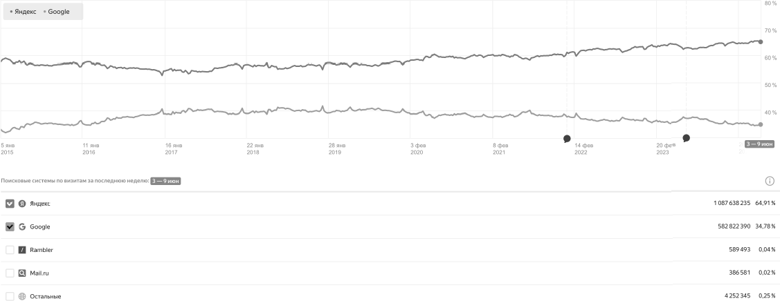 • Поисковые системы. Две основные – «Яндекс» и Google – контролируют большую часть поискового трафика. Отсюда начинается путь большинства пользователей. В поисковике легко найти любую информацию, поэтому он незаменим в продвижении бизнеса: через него постоянно приходят новые клиенты. Чем быстрее вы попадете в топ поисковых систем, тем легче вас найдут те, кому интересно ваше предложение.