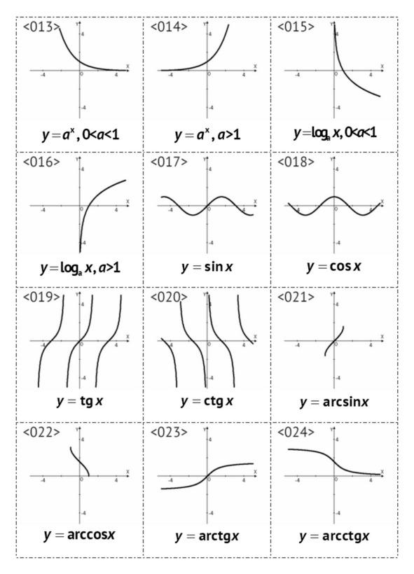 — обратные тригонометрические: arcsinx, arccosx, arctgx, arcctgx.
