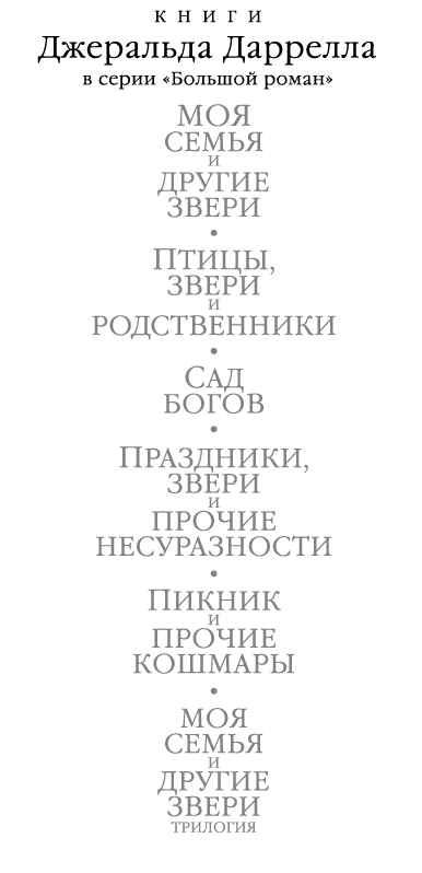 «Пикник и прочие кошмары» — это продолжение романов «Моя семья и другие звери» — «книги, завораживающей в буквальном смысле слова» (Sunday Times) и «самой восхитительной идиллии, какую только можно вообразить» (The New Yorker), — «Птицы, звери и родственники» и «Сад богов», а также сборника рассказов «Праздники, звери и прочие несуразности». С неизменной любовью и неподражаемым юмором Даррелл рассказывает о пребывании своей семьи (в том числе старшего брата Ларри, то есть Лоренса Даррелла — будущего автора знаменитого «Александрийского квартета») на греческом острове Корфу и об их дальнейших приключениях, демонстрируя самую широкую палитру писательского мастерства вплоть до готической истории о призраках. Эти романы и сборники разошлись по миру многомиллионными тиражами, стали настольными книгами уже у нескольких поколений читателей, а в Англии даже вошли в школьную программу. «Трилогия о Корфу» (с течением времени разросшаяся до шести книг) трижды переносилась на телеэкран, причем последний раз — в 2016–2019 годах, когда британская компания ITV выпустила сериал «Дарреллы», одним из постановщиков которого выступил Эдвард Холл («Аббатство Даунтон», «Мисс Марпл Агаты Кристи»).