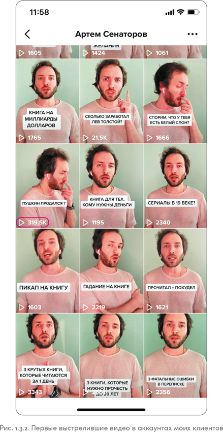 Моя книга — вовсе не попытка поживиться на модной теме. Я работал над методологией продвижения в TikTok целый год, прежде чем решился поделиться своими знаниями и опытом в печатном формате. За это время я снял 700 роликов для личного аккаунта и 300 роликов для клиентов, провел сотню вебинаров и получил более 400 отзывов от учеников.