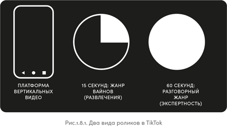 На момент написания книги TikTok ввел возможность загрузки длинных видео длительностью до трех минут, однако пока их мало и они еще не прижились. Поэтому в книге мы будем рассматривать видео длительностью до минуты, тем более что трехминутные видео в плане содержания сильно от них не отличаются.