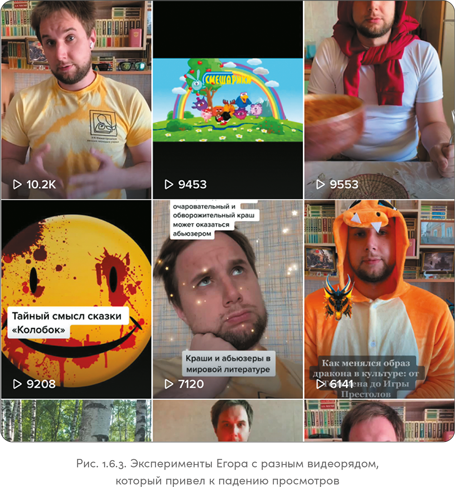 Я вновь напомнил Егору о правиле визуального единообразия, и он вернулся к съемкам в своей комнате на фоне книжной полки. Алгоритмы TikTok вновь получили возможность находить для него однородную аудиторию, и «просмотры вновь пошли вверх».