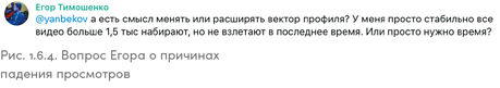 В результате количество просмотров стало уменьшаться, о чем Егор написал мне в рабочем чате. С такой ситуацией сталкиваются все TikTok-блогеры, и вопрос не был для меня неожиданностью. Привожу его полностью, поскольку знаю, что многие читатели зададут такой же.