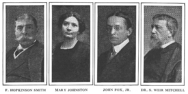 No list of contemporary American writers of fiction would be complete without the names of F. Hopkinson Smith, John Fox, Jr., Dr. S. Weir Mitchell, and Miss Mary Johnston. Mr. Smith has gained skill as a writer steadily as he has gained skill as a painter; and in the small group of stories which bear his name two or three are likely to be read for a long time to come. “The Fortunes of Oliver Horn” shows Mr. Smith’s art at his best, for it is art of the heart as well as of the brain and hand. His romance has permanent elements of human nature; idealism, loyalty, and love are the soul of it.