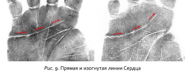 Изогнутая линия Сердца дает экспрессивность и открытость переживаний, а прямая — скрытность, сдержанность в выражении симпатий и антипатий, но при этом желание доказать любовь не словом, а делом.