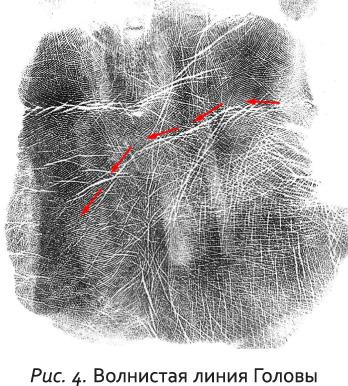 Проблемы сильно изогнутой линии Головы: трудности с планированием, чувством времени и ответственностью, высокая доверчивость. Сильная сторона — предрасположенность к искусству, сценическим профессиям, мистицизму, духовным и энергетическим практикам.