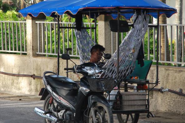 Регистрация занимает минуты три, еще столько же уходит на разъяснение необходимости внесения залога в 100 евро, своего рода гарантии обоюдного спокойствия на тот случай, если мы, воспользовавшись платными услугами отеля, в конце отдыха не сможем расплатиться. Затем следует обмен дружественными поклонами, певучее «коп кун каа», что по-нашему «спасибо», и марш-бросок к лифту. Еще пара мгновений — и мы в номере, чистом и комфортабельном. Огромная кровать, диван, балкон, чайник, душевая кабина с каменной скамьей как в бане и прочие прелести жизни.