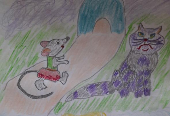 Жила-была серая неприметная мышка Нуся. Очень послушная и осторожная. Редко выходила из своей норки, всего и всех боялась. Но как-то раз родители мышки долго не возвращались с охоты, и Нусе пришлось выйти из своего домика. Только оглянулась по сторонам, сразу запах Мурзика унюхала. Да не успела спрятаться. Кот тут как тут. Схватил мышку. Прослезилась она: