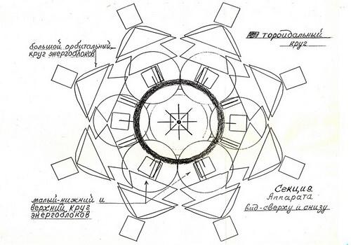 секции образуется плазменный электромагнитный поток. Который, вместе с торсионными полями трёх секций постепенно высвобождаясь с потока, воздействует на энергетические окружающие плоскости самой планеты, нашего созвездия и в итоге всей галактики».