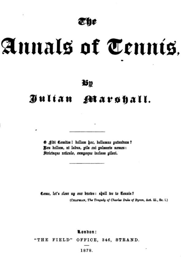 Джулиан Маршалл (1836–1903), как и многие английские джентльмены викторианской эпохи был разносторонне развитым человеком. Одним он известен, как заядлый собиратель гравюр, рукописей и печатных изданий, музыкальной тематики, публицист и писатель, внесший значительный вклад в создание The New Grove Dictionary of Music and Musicians — издаваемого и по сей день авторитетнейшего музыкального словаря. Но, пожалуй, наибольшей известности он добился, как энтузиаст и популяризатор тенниса. В 1872 году, он, явно питая английскую страсть того времени к упорядочиванию кодификации, составляет правила существовавшего уже несколько столетий тенниса, в котором сам достиг высокого мастерства. Однако, к тому времени, на пятки старинной игре уже начал наступать ее новорожденный отпрыск — лаун-теннис, отобравший впоследствии у своего прародителя не только популярность, но и название, заставив последнего добавить к своему имени слово «реал» (real).