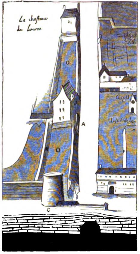 Эти корты, а их было два, были построены «en forme de baraque», непокрытые и довольно узкие, как показано на плане, рис. 2.[55] В письме от 15 марта 1527 года[56] Франсиск I просил мэрию Парижа (Ville de Paris) построить набережную за рвом стены Карла V, используя для этого существующий канал и убрав выступающий дом на углу Австрийской улицы (Rue d’Autruiche). Эта набережная еще не была построена в 1580 году, но дом был экспроприирован, как и все дома на западной стороне улицы, напротив Лувра. Вскоре после этого их сменил Jeux de Paume, стоявший по обе стороны Гишэ (Guichet) [фр. «окна», «калитки» — арочное сооружение, проезд, проход во внутренний двор Лувра], занимавший места нескольких домов и дровяного склада, который раньше составлял угол улицы и набережной. Соваль (Sauval) [французский историк XVII в.] относит дату постройки Jeux de Paume, как и многих других сооружений в Лувре, к 1580 году.