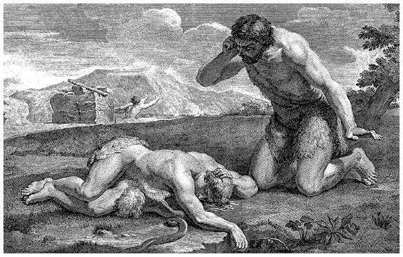 Каин над телом убитого Авеля. Офорт Фредерика Хортемельса, 1729 г.