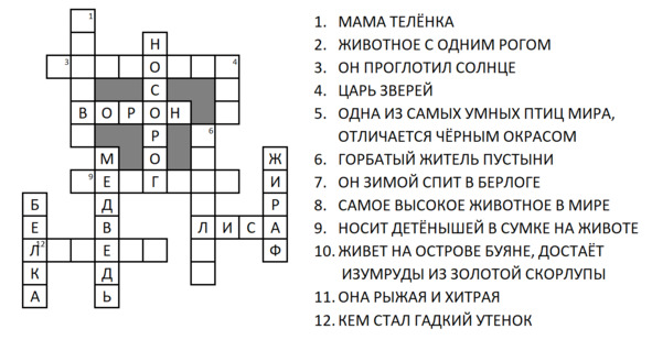 — Я придумал, как мы будем развлекаться дальше. Следующий кроссворд Пете я загадаю сам, и состоять он будет только из названий животных. Кого Петя отгадает, с того мои волшебные чары и снимутся!