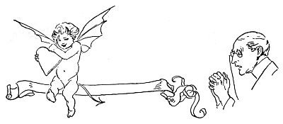 These stories, mademoiselle, as your intuition tells you, are for old-fashioned young people only; and should be read in the Golden Future, some snowy evening by the fire after a home dinner à deux. Your predestined husband, mademoiselle, is to extend his god-like figure upon a sofa, with an ash-tray convenient. You are to do the reading, curled up in the big velvet wing-chair, with the lamp at your left elbow and the fender under your pretty feet. As for me, I shall venture to smile at you now and then from the printed page—but with discretion, mademoiselle, not inconveniencing your party à deux. For, to be rid of me, you have merely to close this book.