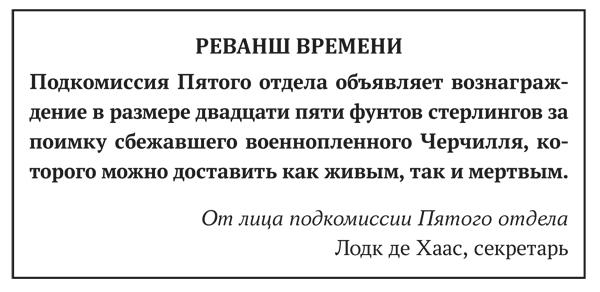 Объявление, отпечатанное на бумаге плохого качества крупным шрифтом, напоминающее плакаты о сбежавших рабах, появилось после побега Уинстона Спенсера Черчилля из тюрьмы при Государственной образцовой школе в Претории в декабре 1899 г.