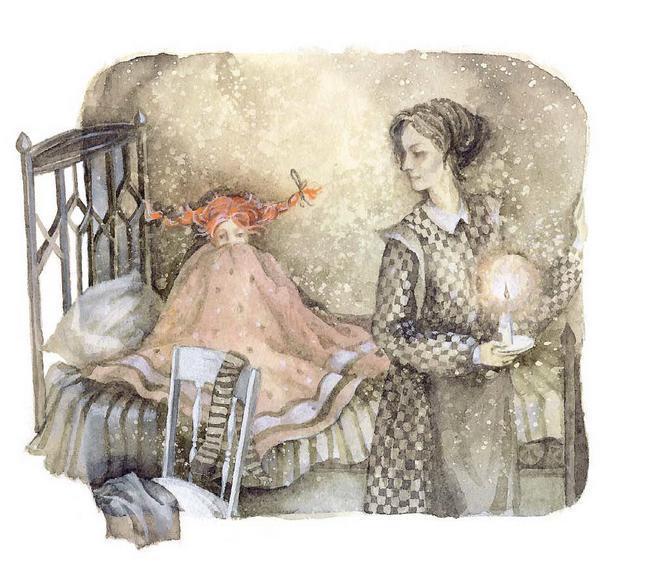 Когда Мэтью открыл дверь, Марилла быстро поднялась ему навстречу. Но как только ее взгляд упал на маленькую странную фигурку с длинными ярко-рыжими косами и радостно сияющими глазами, она остановилась в изумлении.