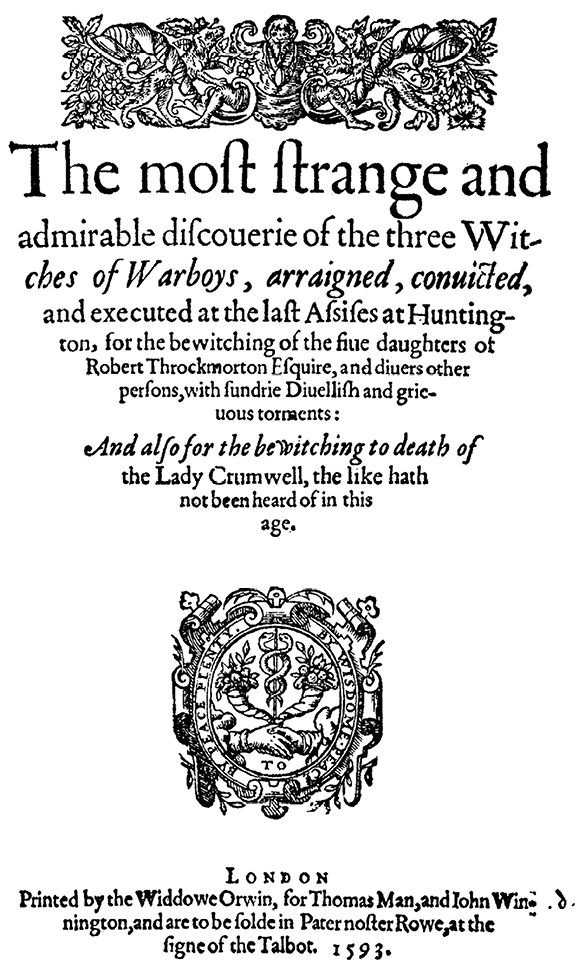 Весьма странное и удивительное разоблачение трех ведьм из Варбойс, обвиненных, осужденных и казненных на последнем заседании Выездного суда в Хантингдоне за то, что колдовством обрекли пять дочерей Роберта Трокмортона, эсквайра, и разных других особ на всевозможные тяжкие дьявольские