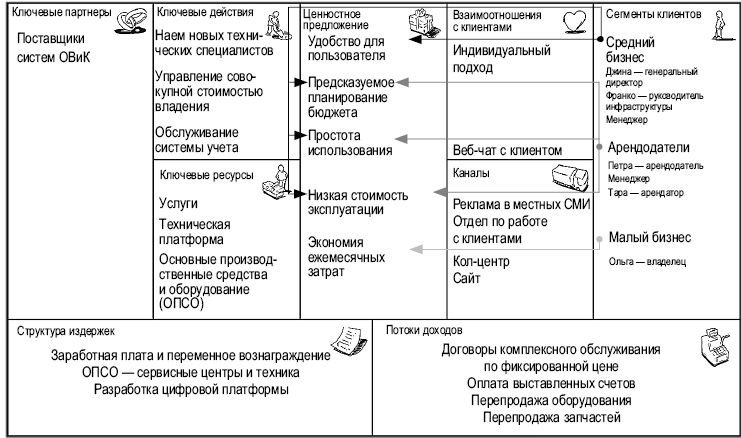 Клиенты из сегмента среднего бизнеса ценят возможность отдавать обслуживание систем ОВиК на аутсорсинг — мы помогаем им пользоваться системами ОВиК более эффективно и экономим их деньги (в долгосрочной перспективе), сокращая накладные расходы на обслуживание. Наше ценностное предложение и способность его реализовывать — это то, что в настоящее время приносит нам прибыль. Если конкретно, то эта способность измеряется в количестве клиентов из этого сегмента, которых мы удерживаем или переводим на договоры комплексного обслуживания по фиксированной цене (в противоположность договорам об оказании разовых услуг).