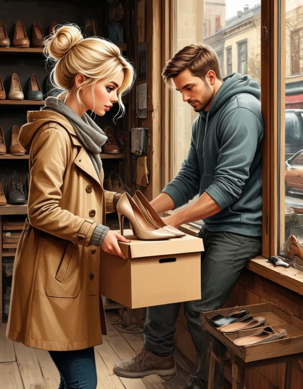 В мастерской было тихо и уютно, приглушённый свет лампы создавал атмосферу тепла, а воздух пропитал запах кожи и обувного крема. На фоне тихо играла джазовая мелодия, придавая моменту особое очарование.