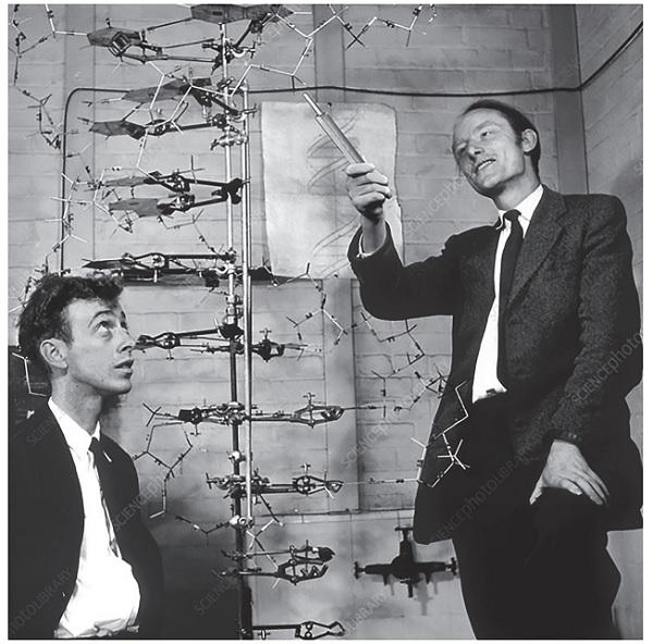 Рис. 1.11 Дж. Уотсон и Ф. Крик и их трехмерная модель ДНК12