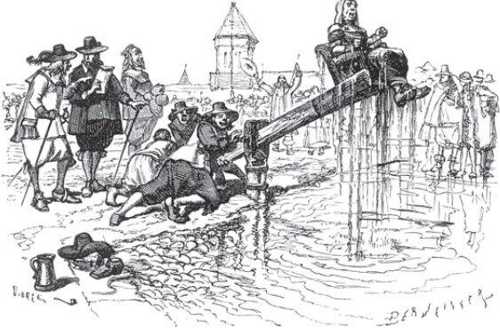 Статут, изданный в начале царствования Вильгельма III и Марии, обрушился со всей силой на сообщества компрачикосов. Это было для них жестоким ударом, от которого они уже не оправились. В силу этого статута члены шайки, изобличенные в преступных действиях, подлежали клеймению: каленым железом у них выжигалась на плече буква R, что значит rogue, то есть мошенник, на левой руке – буква Т, означающая thief, то есть вор, а на правой – буква М, означающая manslay, то есть убийца. Главари, «предположительно богатые люди, хотя с виду и нищие», подвергались collistrigium’y, то есть стоянию у позорного столба (pilori), и на лбу у них выжигали букву Р; их имущество подлежало конфискации; деревья в их угодьях вырубались, пни выкорчевывались. Виновные в недоносительстве на компрачикосов карались как их сообщники конфискацией имущества и пожизненным тюремным заключением. Что же касается женщин, входивших в состав шаек, то они подлежали наказанию, носившему название cucking-stool, – это была своего рода западня, а самый термин образовался из соединения французского слова coquine (непотребная женщина) и немецкого слова Stuhl (стул). Английские законы отличаются необыкновенной долговечностью: в английском уголовном кодексе это наказание до сих пор сохранилось для «сварливых женщин». Cucking-stool подвешивают над рекой или прудом, сажают в него женщину и погружают в воду. Эта операция повторяется трижды, «чтобы охладить злобу провинившейся», как поясняет комментатор Чемберлен.