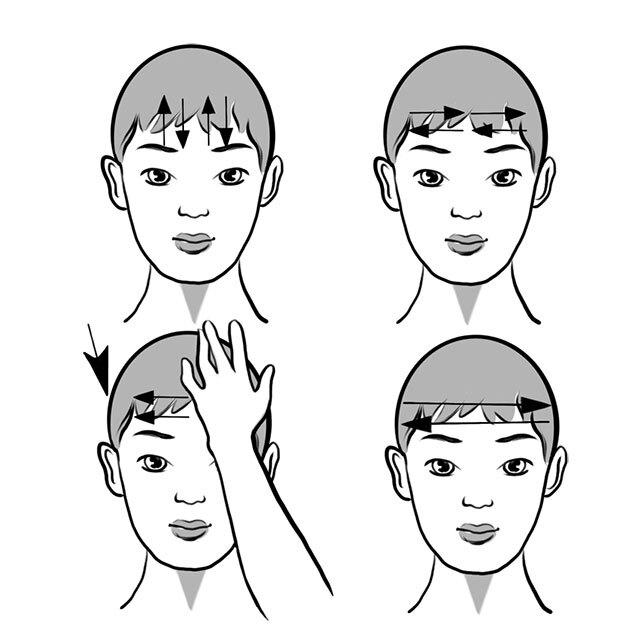 – зажимаем одну половину лба ладонью, а другую половину кончиками пальцев проглаживаем от центра к виску вдоль лба (симметрично с двух сторон).