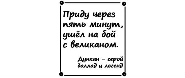 Есть в этой книге ещё один храбрец — Дункан, из самой Шотландии. Он герой местных баллад и легенд. Увы, сейчас Дункан немного занят — борется с очередным великаном, но вскоре вы с ним познакомитесь. Даём слово!