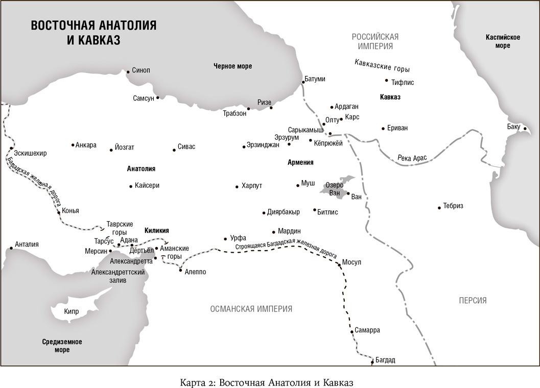 В начале ХХ века Османскую империю по сложившейся традиции называли Турцией. Однако это название игнорировало этническое и религиозное многообразие империи, где арабы, курды, греки и армяне составляли такую же значимую часть османской общности, как и турки. Чтобы избежать нудного повторения слова «османский», в этой книге я употребляю слова «османский» и «турецкий» как взаимозаменяемые, особенно в отношении армии. В тех же случаях, когда мне нужно указать на какую-либо этническую или религиозную общину, не относящуюся к турецкому большинству, я использую термины «османские арабы» или «османские армяне».
