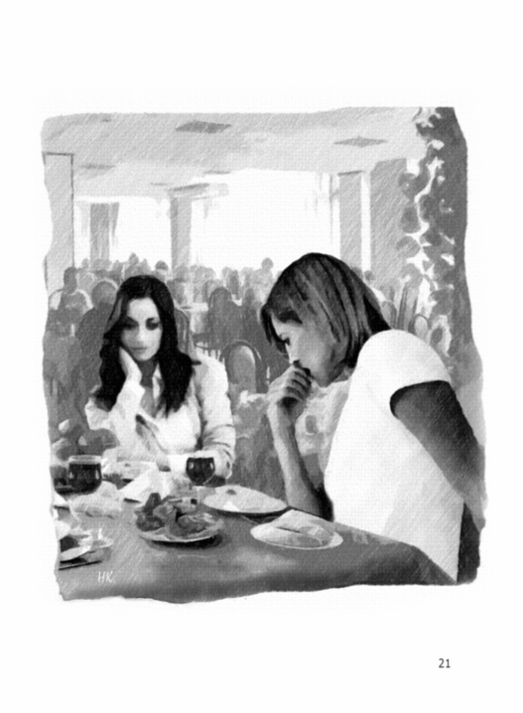 — Но уж нет, — твердо возразила собеседница, — в ресторан я с вами не пойду, мне хватило вашей вчерашней попойки, — она провела ребром ладошки по шее, — вот так!