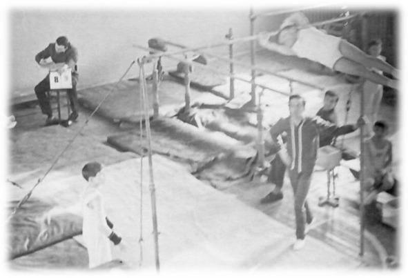 Спортивная школа располагалась в отдельном здании на берегу реки Уса. Гимнастический зал находился на втором этаже. Когда мы пришли на нашу первую тренировку, зал показался мне пустым. В углу сиротливо стояли параллельные брусья, а рядом лежала горка матов, покрытых черным кожзаменителем.
